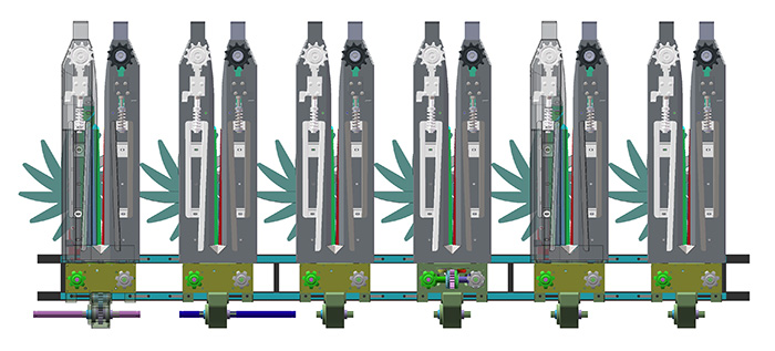 割臺行距可調(diào),可調(diào)區(qū)間400~850mm的壟距,包含4080,4484,6363等行距的種植收割,適應(yīng)等距種植方式(580,630),也適應(yīng)大壟雙行的不等距種植方式;